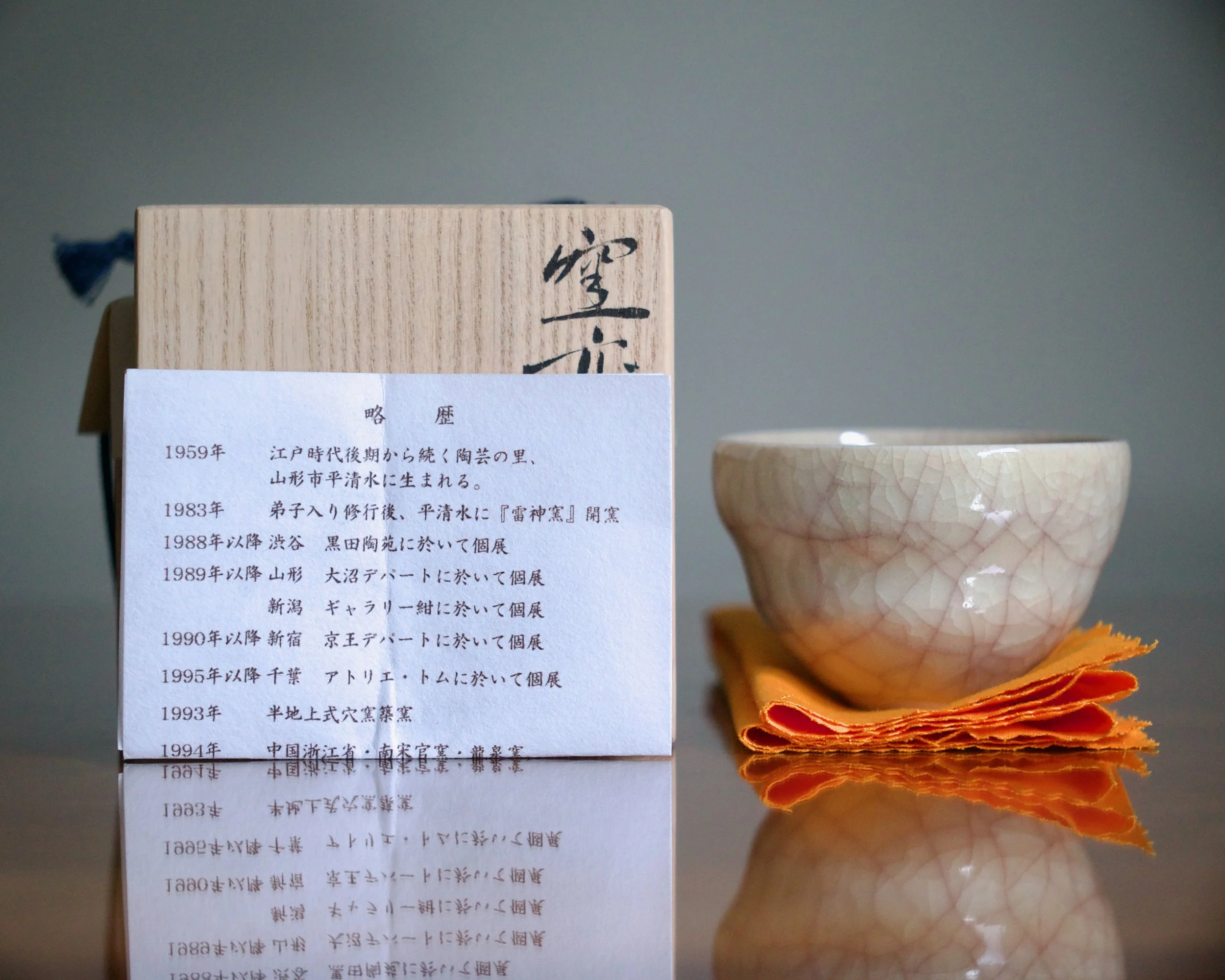 Comes with the signed, stamped, and titled wood box, stamped wrapping cloth, and CV.