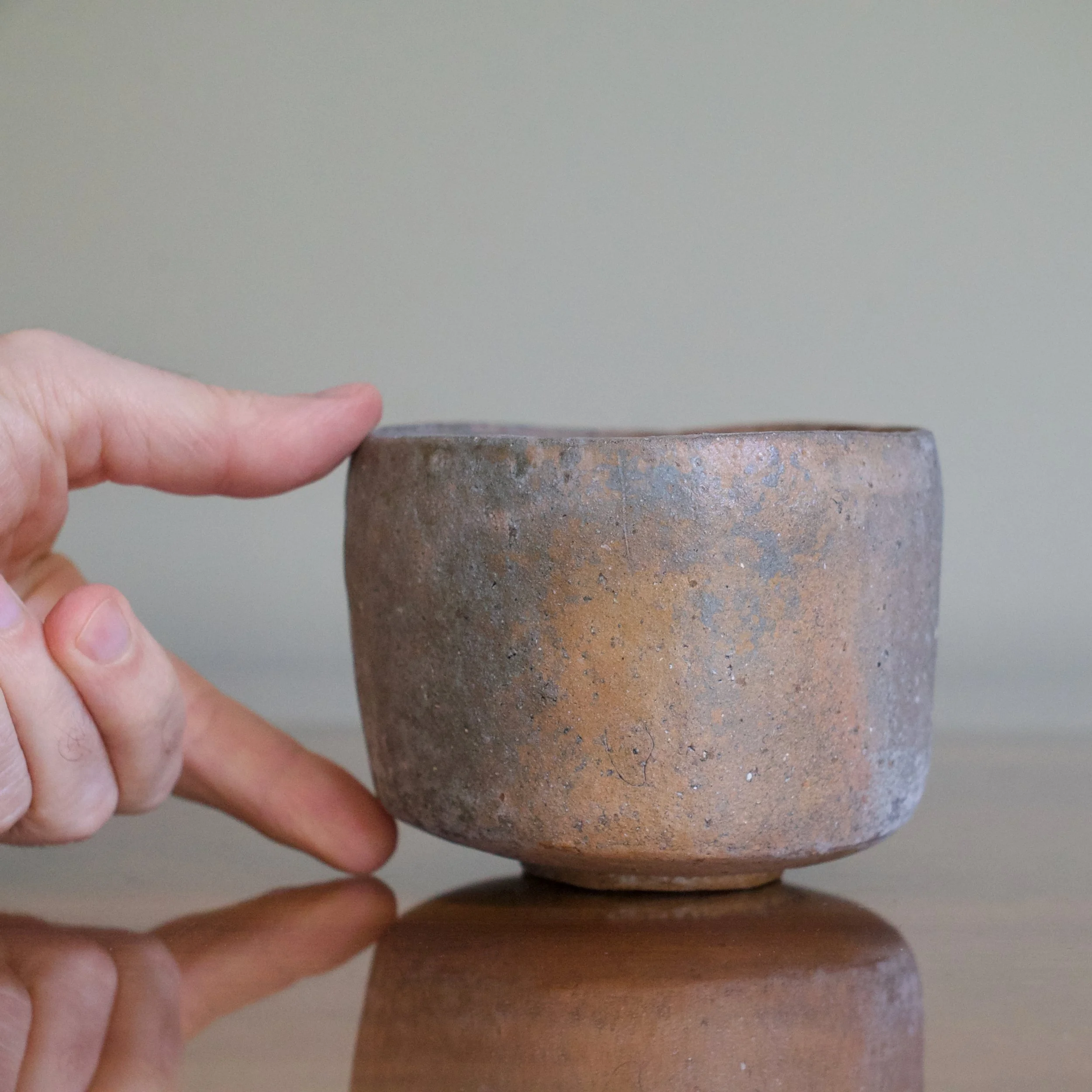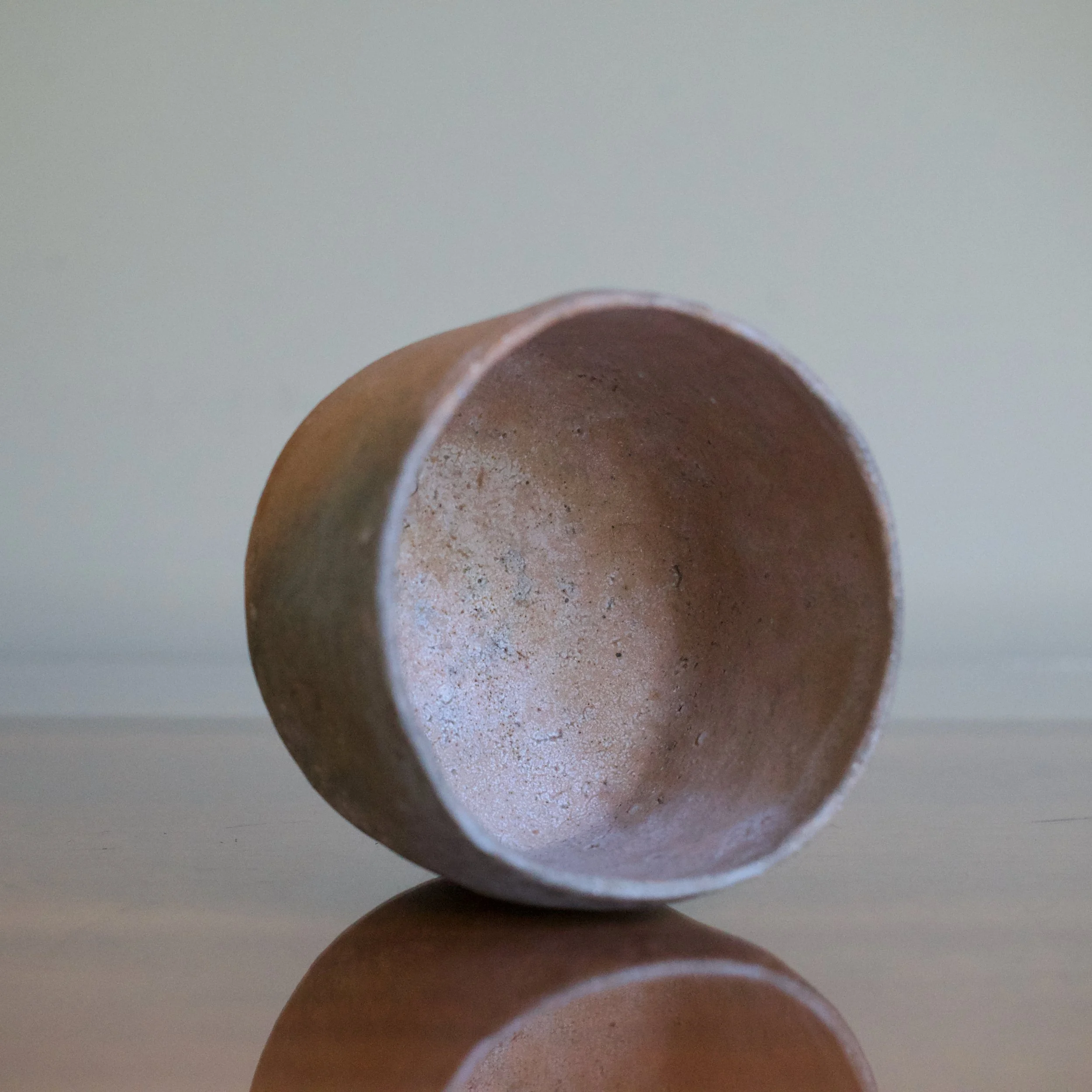 Gathering different wild clays from the north and southwest of France, Claire Landais-Sauvage formed this chawan in her palm, with meditative pushing and pulling of her fingers. Its half-cylinder shape and warm earthy reds recall the archetypal tea bowls made by Chojiro in 16th century Japan, a key inspiration for her work.