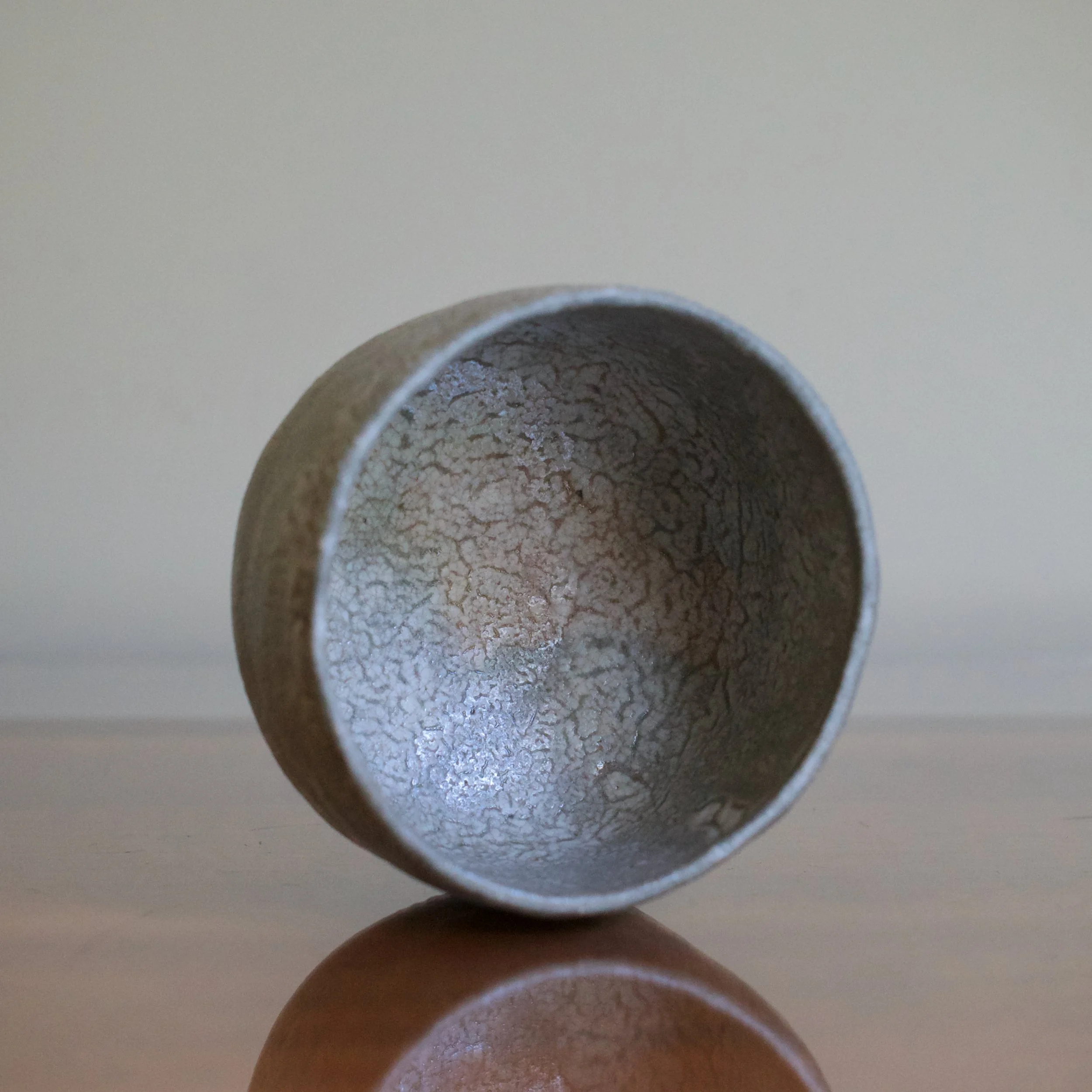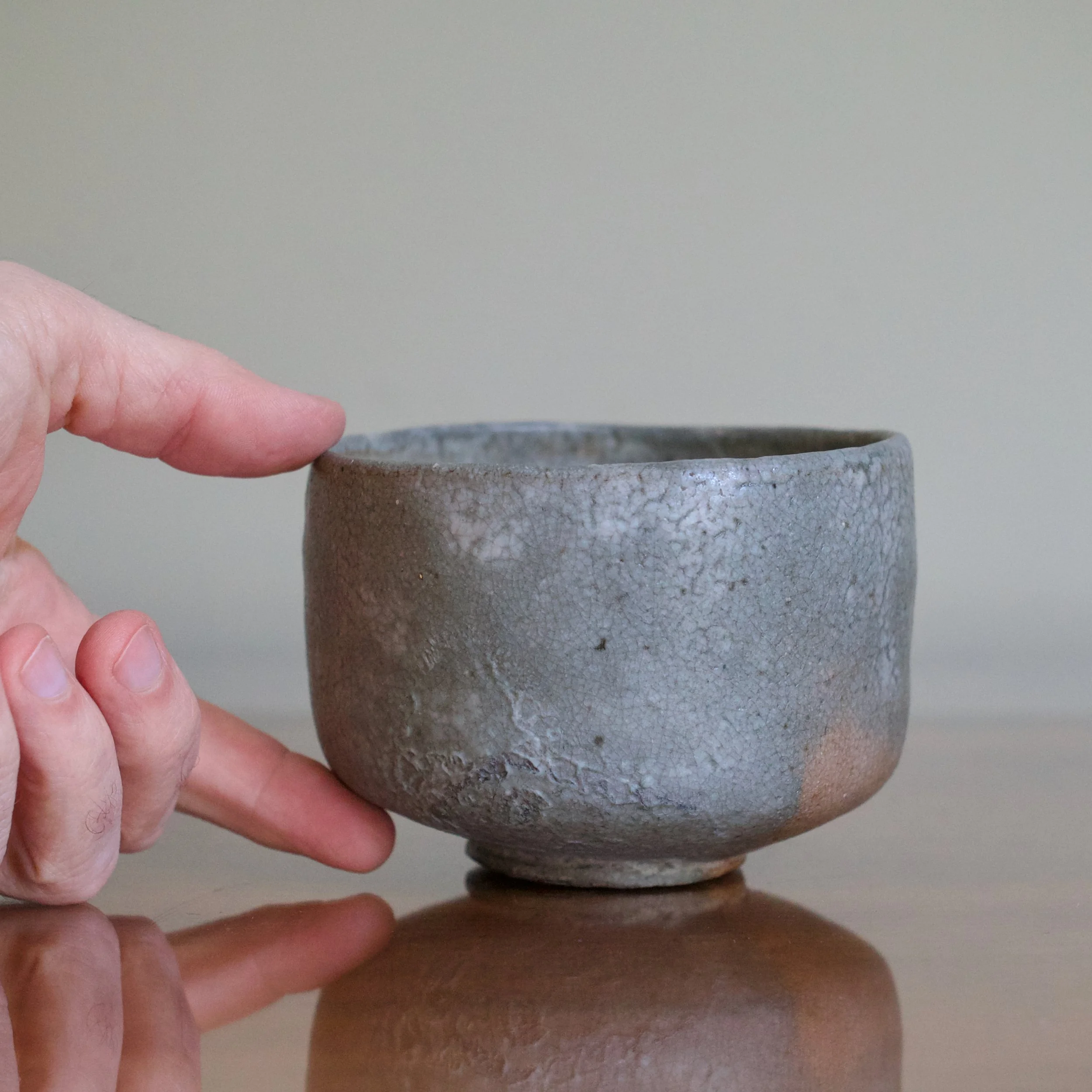 The light grey glaze crawled beautifully, giving the impression of a mountain valley mist that grows at dusk. You have a sense of that time of day when light fades and colours blend. But if you look at the tea bowl’s surface again, you notice a delicate web of crazing, like the haze that sparkles when our eyes meet the limits of their perception.