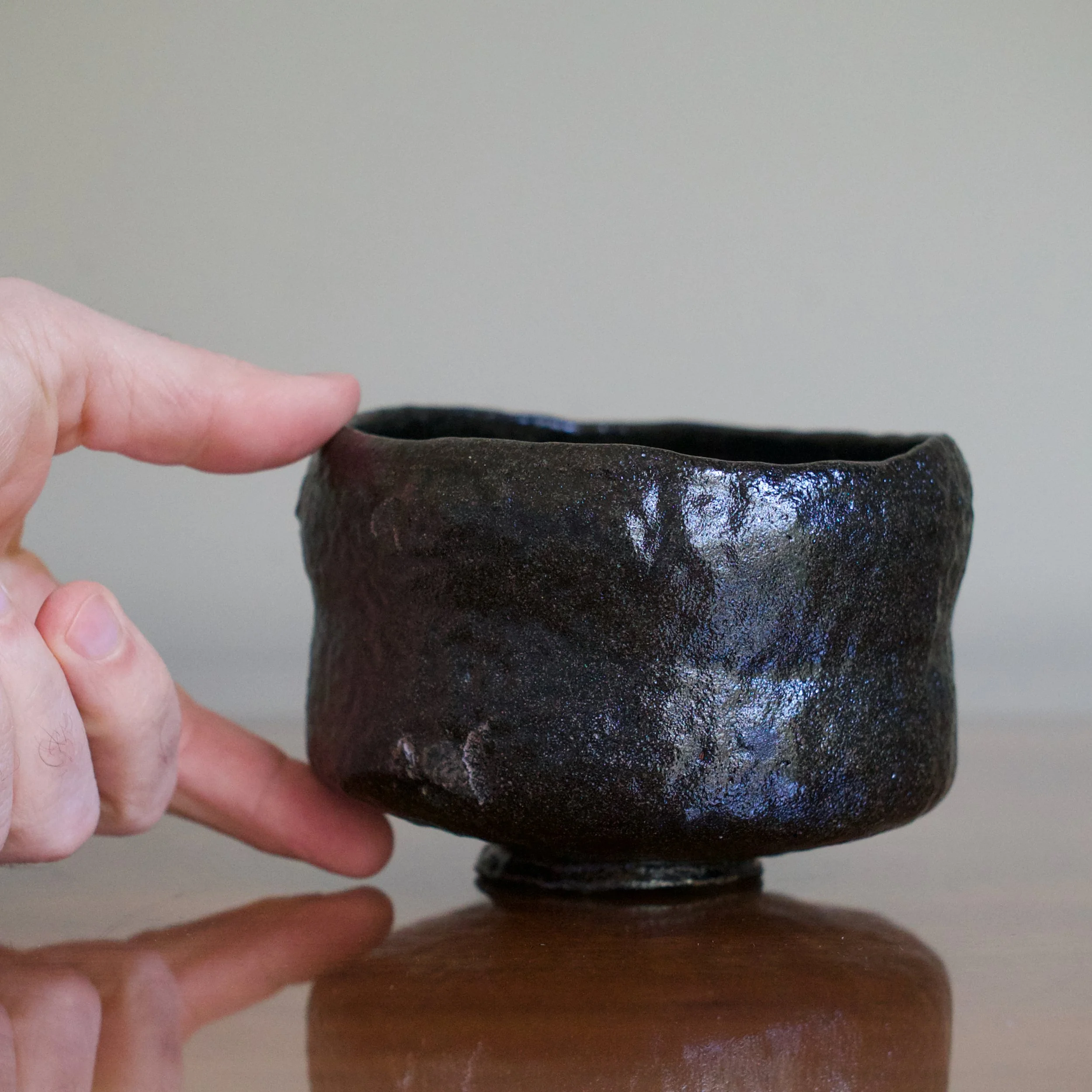 Claire Landais-Sauvage named this beautiful satiny black tea bowl “Sunlight, even at night,” which she took from the 1989 Italian movie “Il sole anche di notte”. She formed the bowl with wild clays gathered in the Lot region in the southwest of France where Landais-Sauvage has a studio. Like all of her bowls, she hand-formed this chawan with a single piece of clay - without adding or removing any - slowly growing its shape with tiny pressures between her fingers.