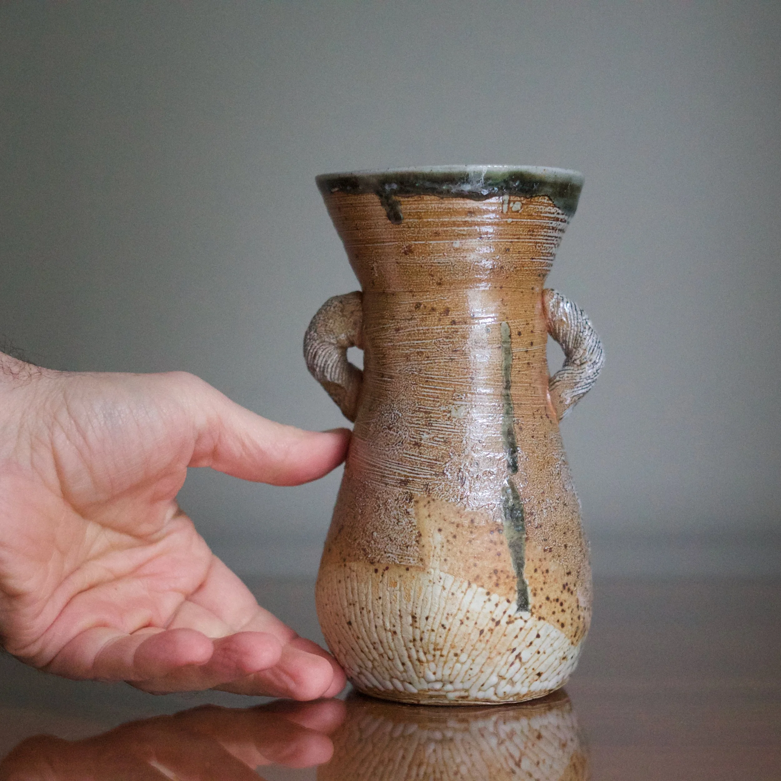 Soda-fired vase with lugs