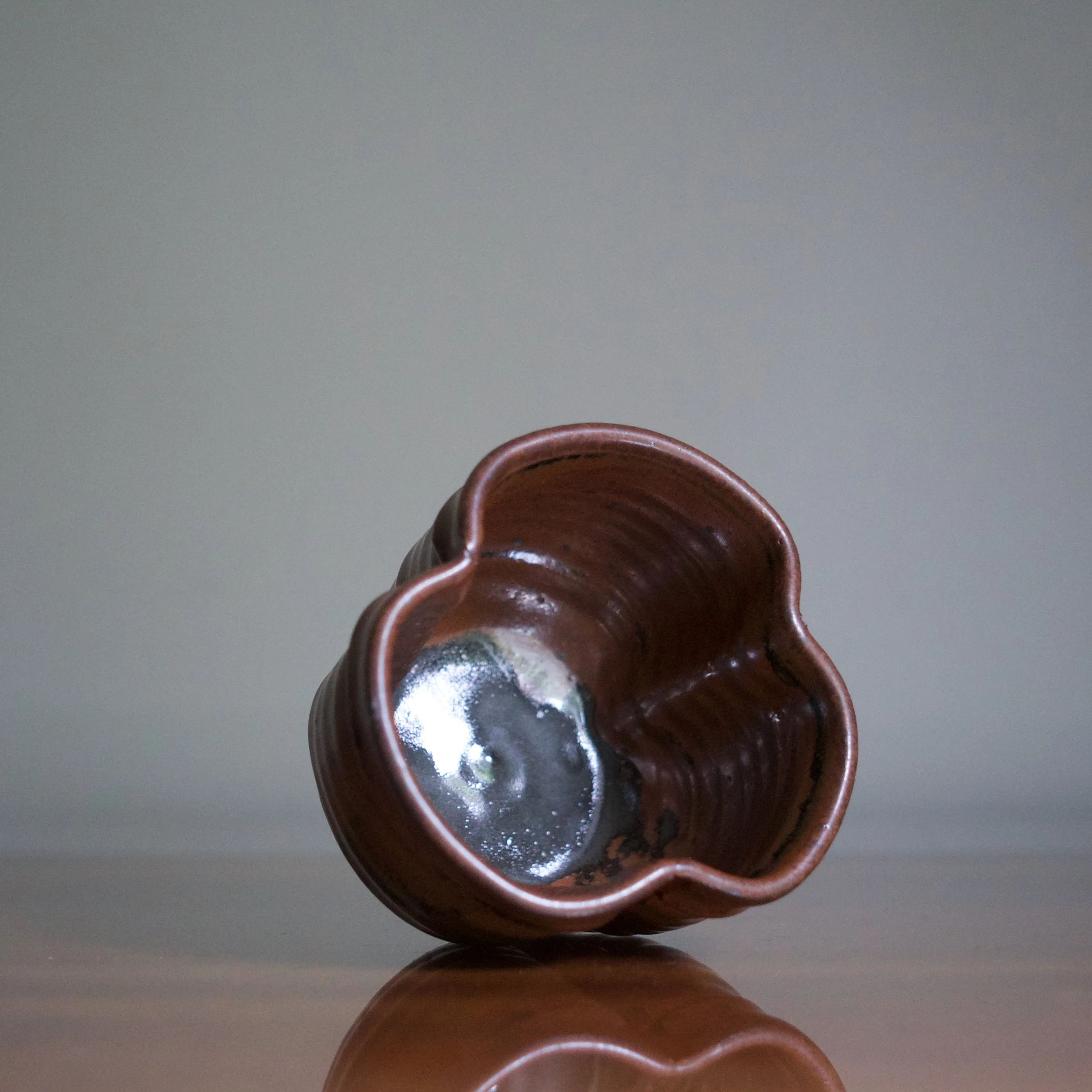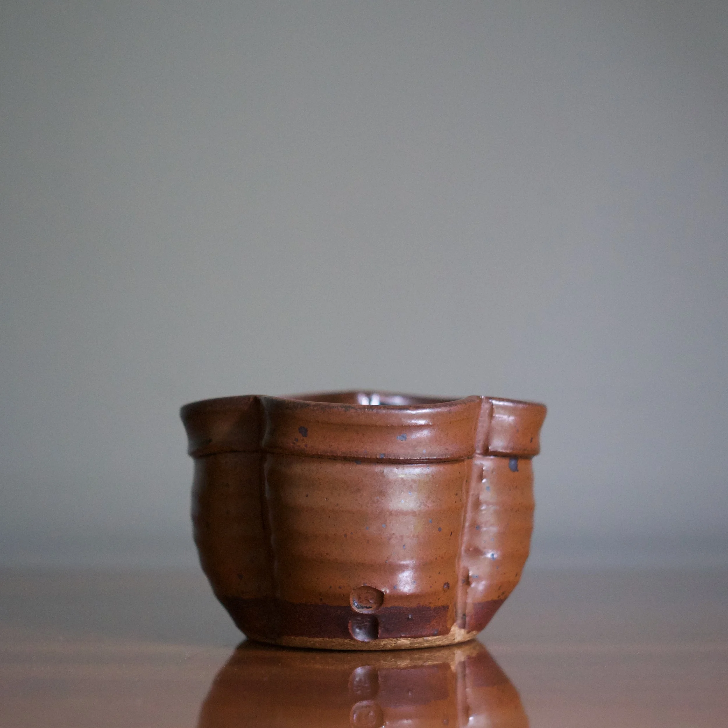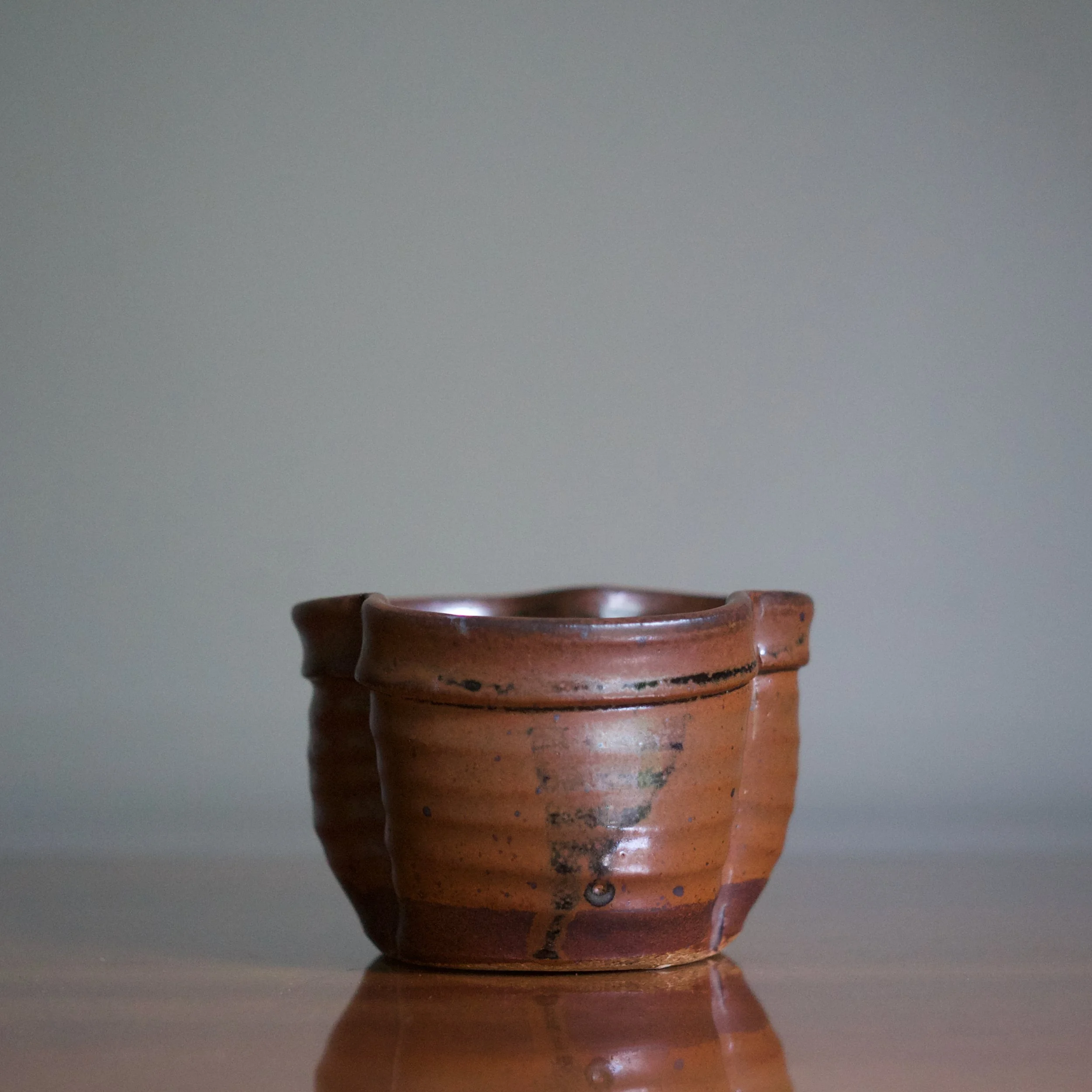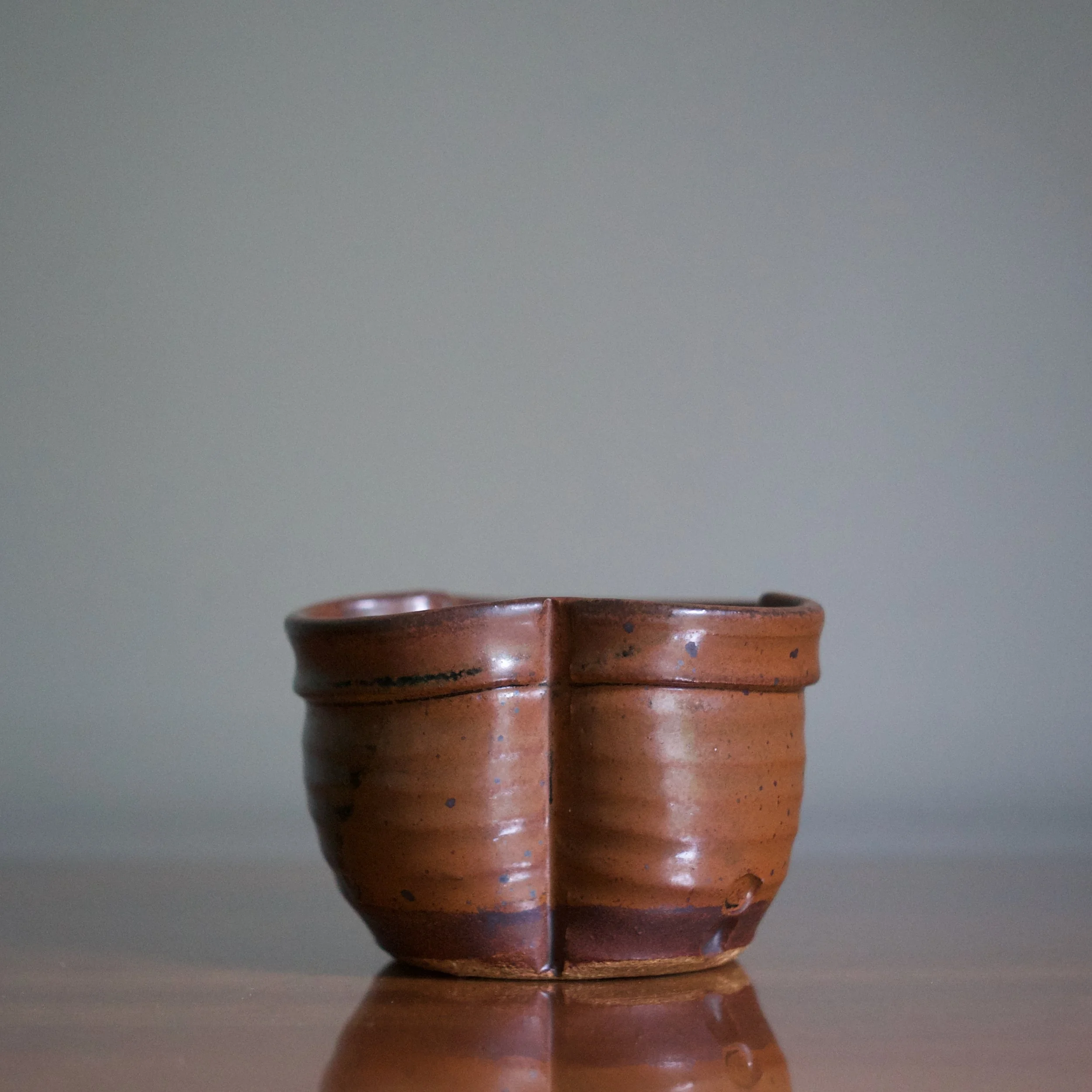 This teapot has many of Reeve’s signature touches: the asymmetric body, angled throwing lines, and delicately pinched spout. Add to that the sugar bowl's trifoliate form, and you have a classic Reeve set. Both pieces are thrown quite delicately, making for a light teapot that takes into account the added weight once it’s filled with water.