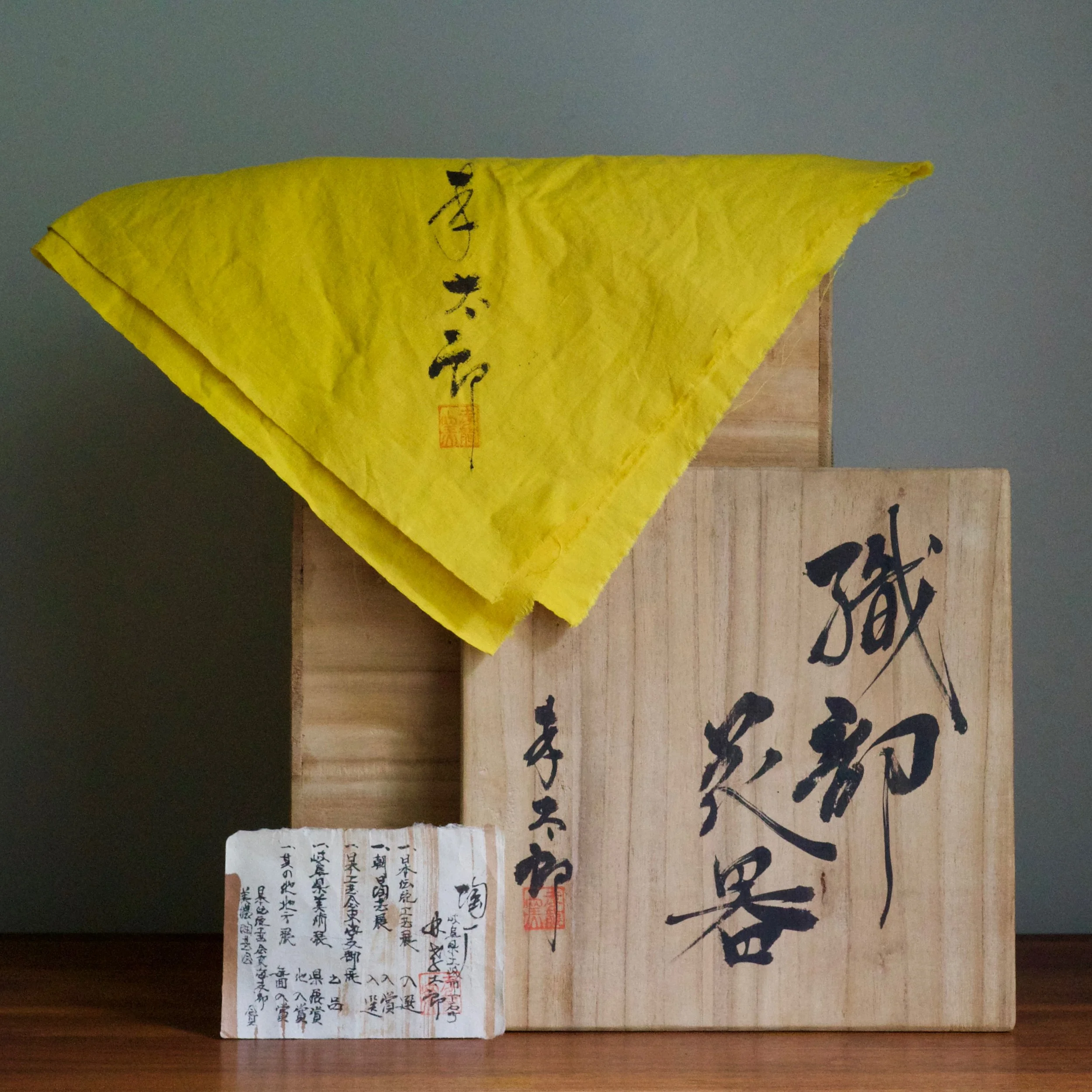 What’s special about this pot are its accessories. The box features Hayashi's elegant calligraphy. The wrapping cloth is not just stamped but also signed. And the original CV was hand-calligraphed on beautiful paper.