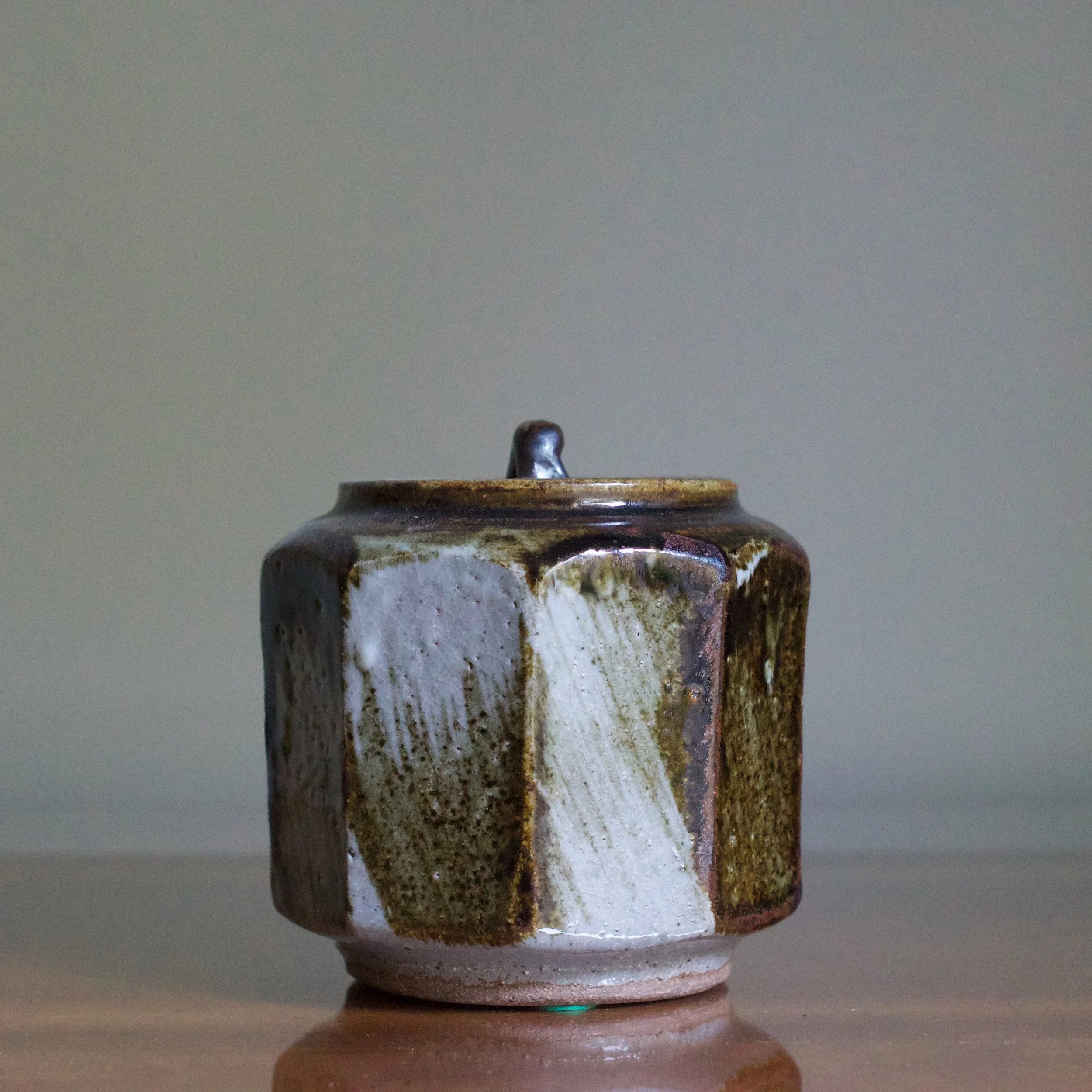 Ian STEELE 1937 - 2011. Worked in Canada and England. STONEWARE LIDDED JAR FACETED STONEWARE LIDDED JAR