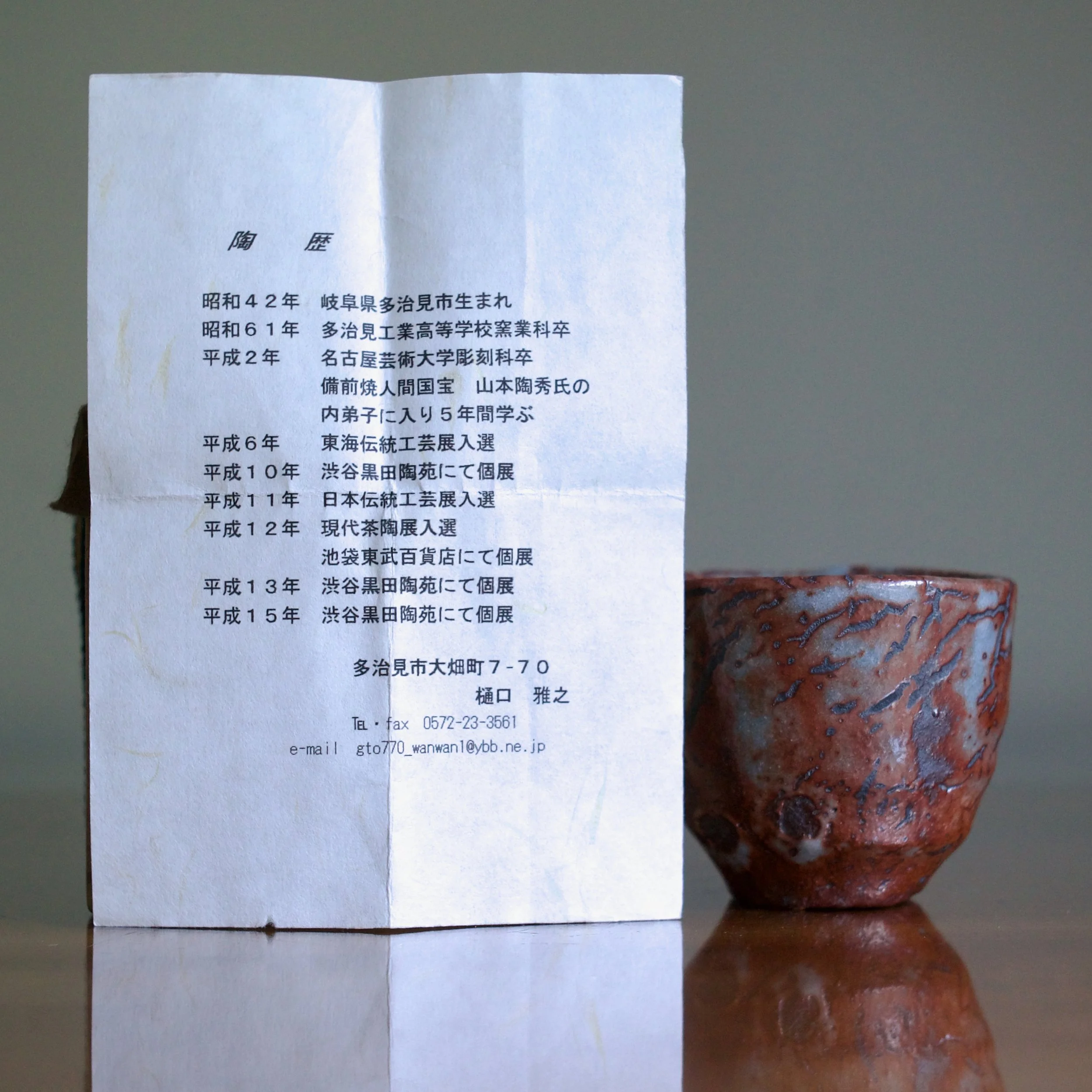 Masayuki Higuchi was born in Tajimi and studied ceramics at the prestigious Tajimi Technical High School. After studying sculpture at Nagoya University of the Arts, he apprenticed in Okayama with Yamamoto Toshu, a Living National Treasure for Bizen ware. Under Yamamoto’s guidance, he was able to master the ancient Bizen art of wood-fired ceramics. When Higuchi returned to Tajimi, he integrated wood-firing into his Mino wares in a region that had converted largely to gas-fired kilns in the post-war years.