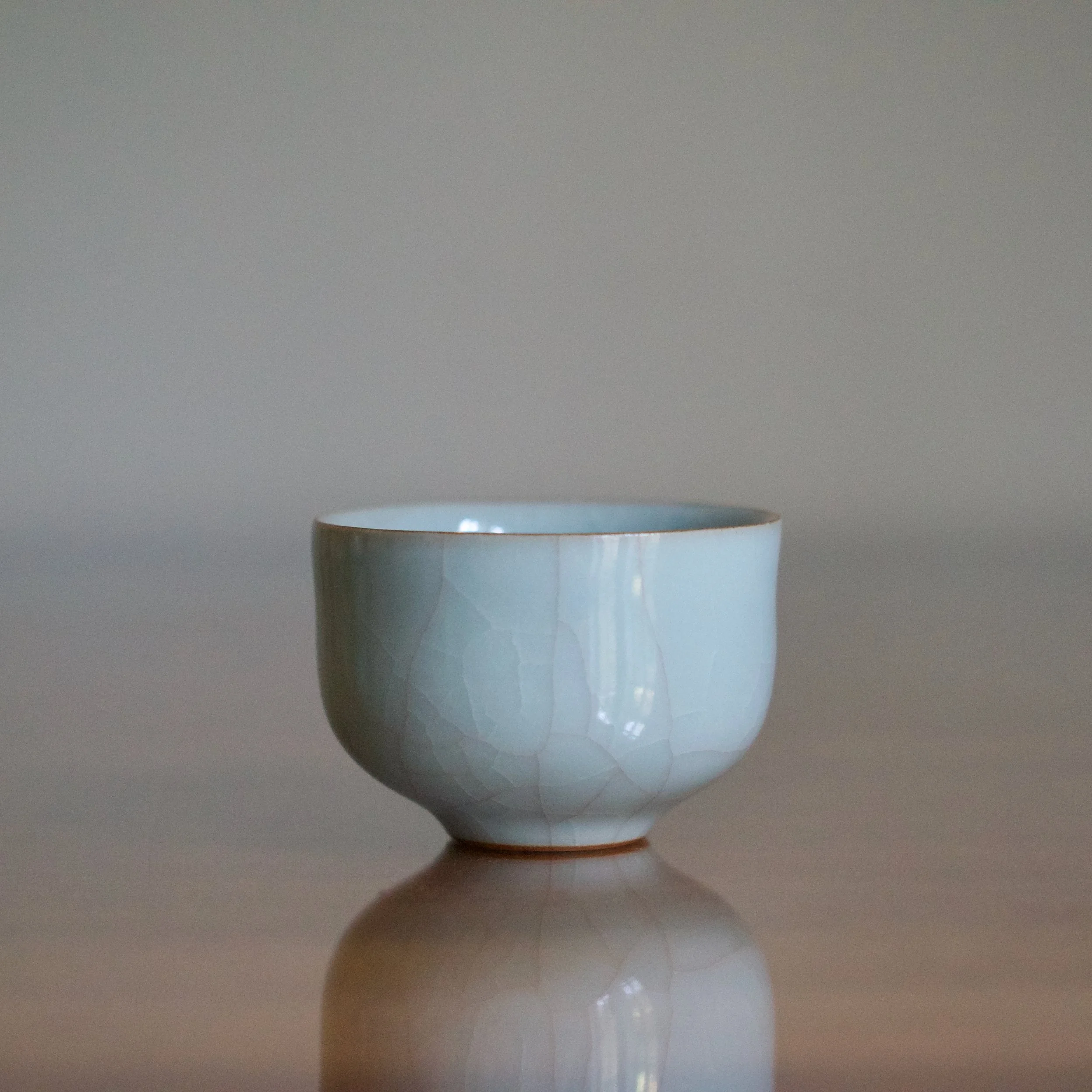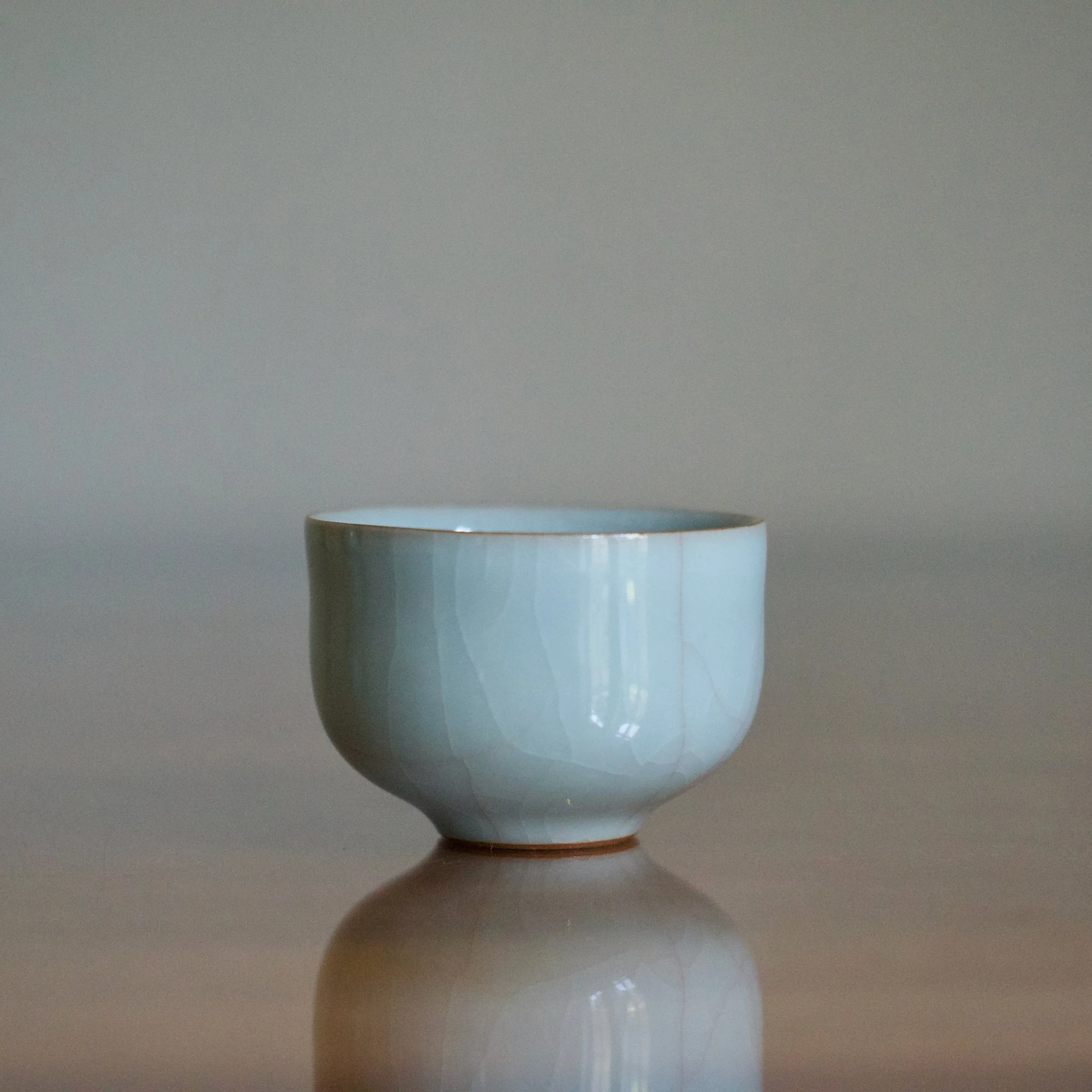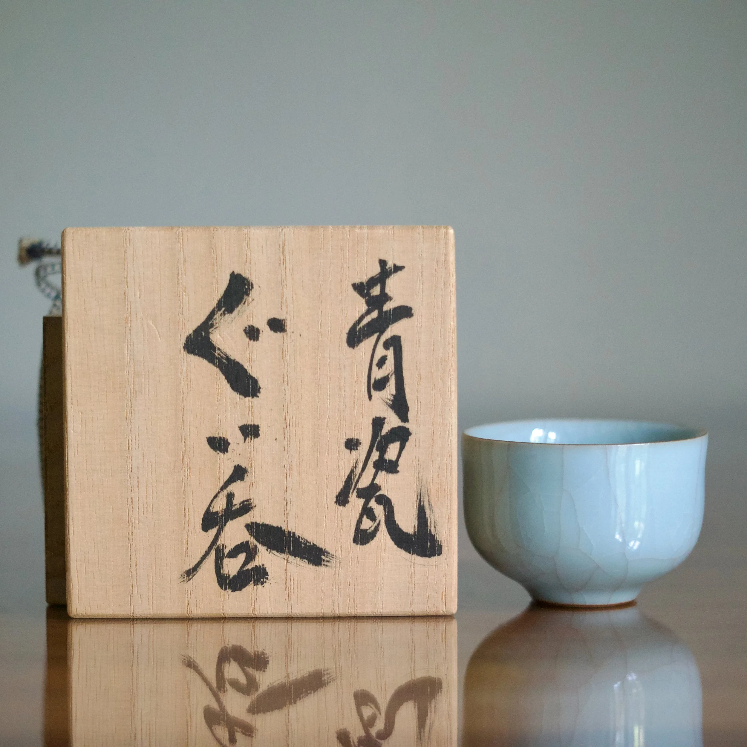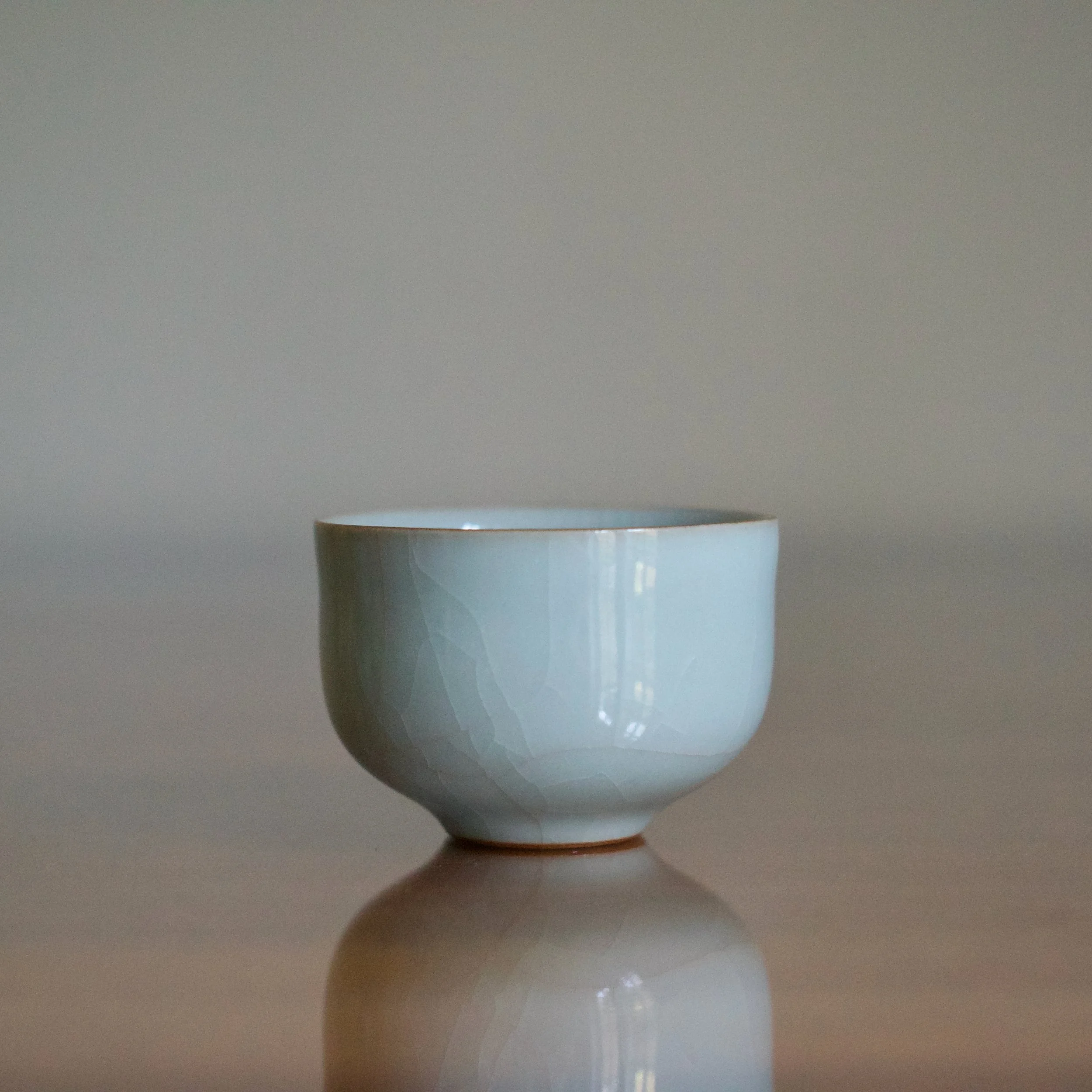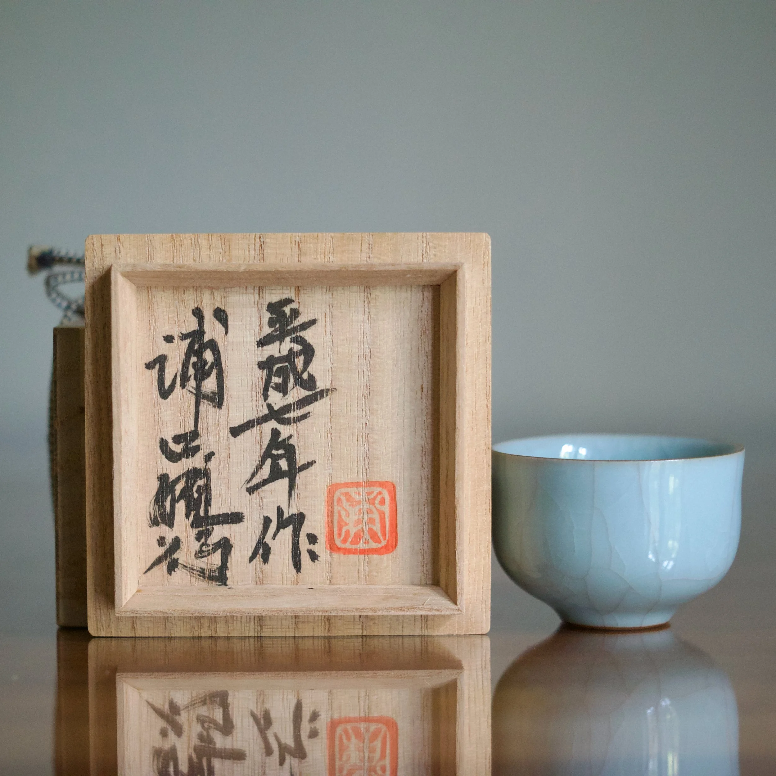 Another early example of Masayuki Uraguchi’s celadons, this sake cup features a classic form with subtle curves. The cup tapers in just slightly in the middle, and the bowl transitions elegantly from bowl to foot. The softness of the form is highlighted by the purity of celadon.
