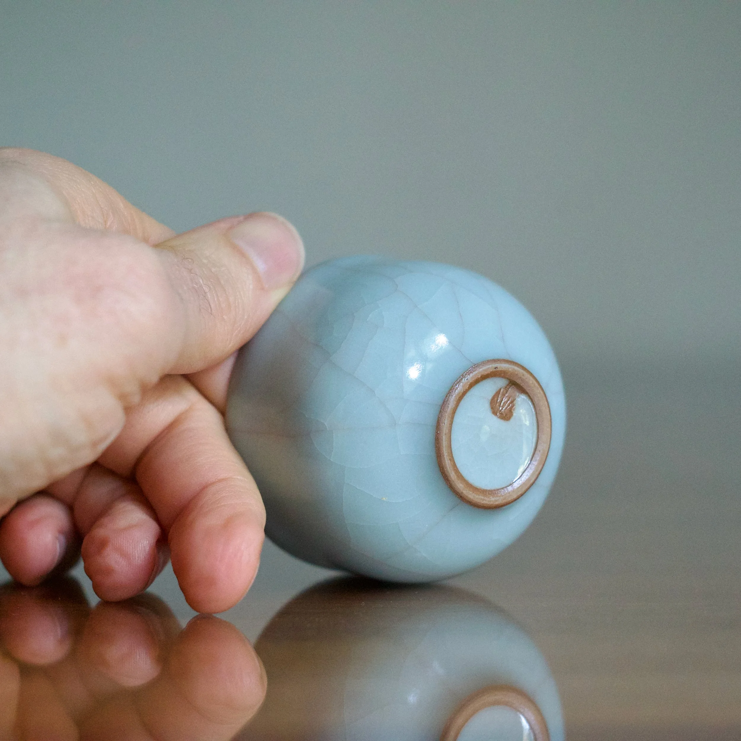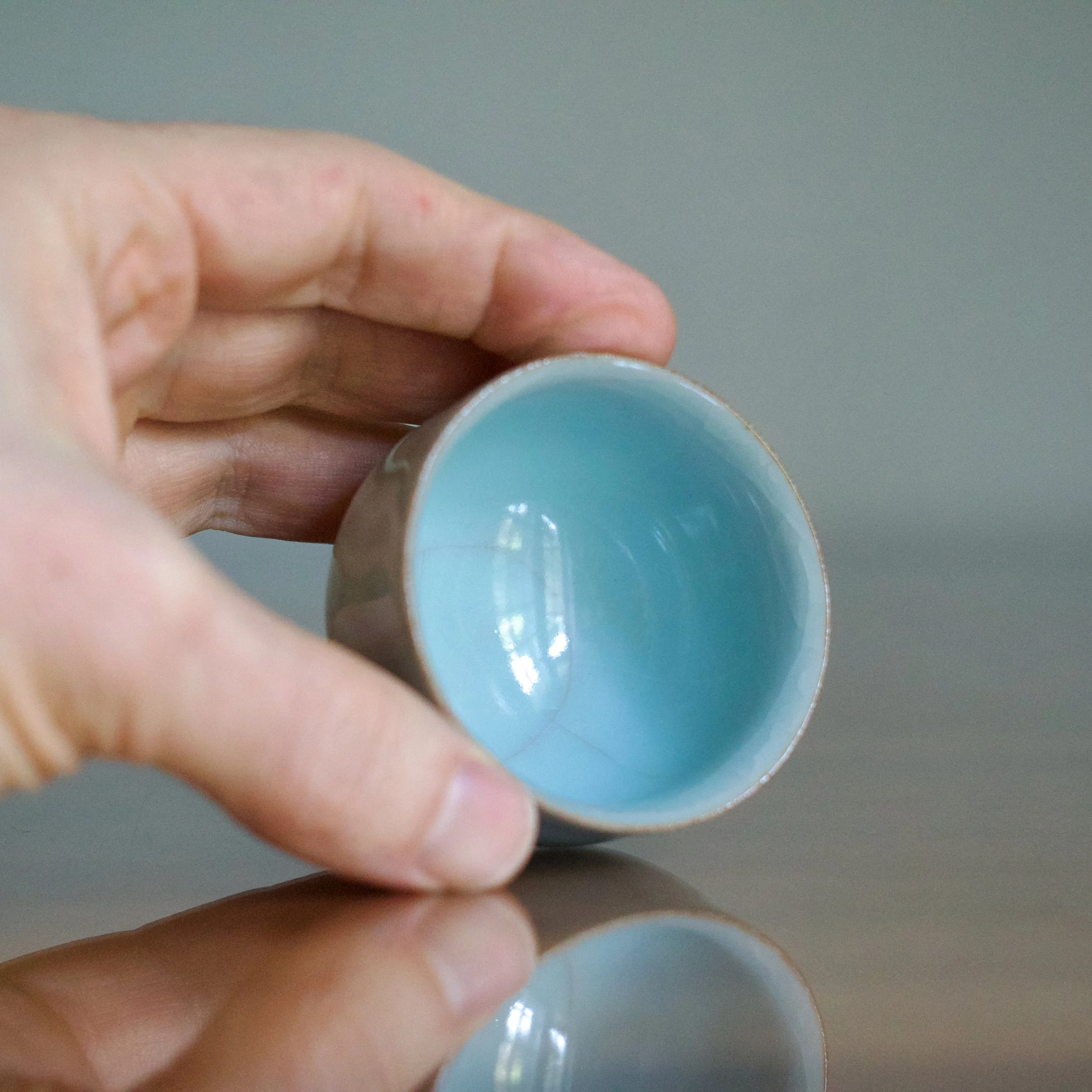 Uraguchi formed the lip particularly thin, not only allowing for a pleasant sipping experience, but also for the warm clay body to appear like a halo from underneath. The iron-rich clay is also evident in the crazing Uraguchi achieves on this cup - a technique for which he would become well known. This cup comfortably holds 60 ml, so while it serves well as a sake cup, this piece is also perfect for serving sencha.