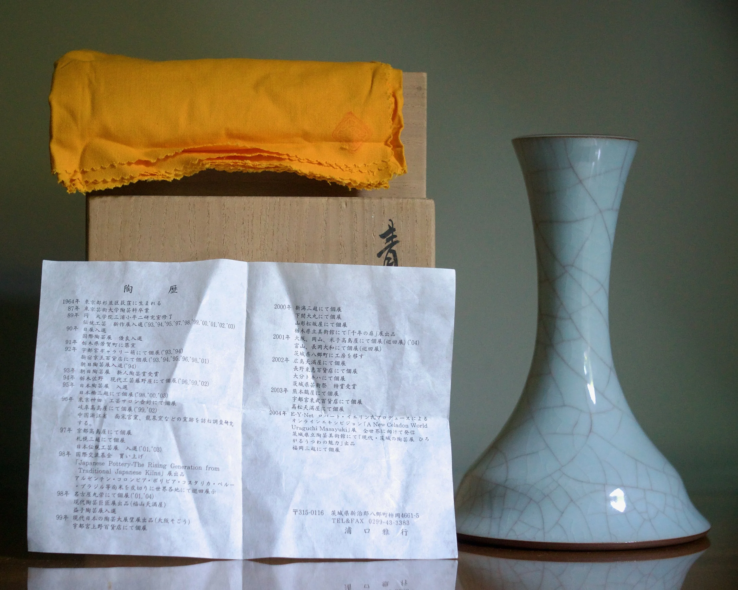 As a student of ceramics, Uraguchi became obsessed with Song dynasty ceramics, taking the opportunity to study under celadon Living National Treasure Miura Koheiji at Tokyo University of Art. He also spent time in China studying guan and longquan wares and the sites where they were produced. His meticulous research and experimenting has resulted in new variations of classic Chinese wares not seen before.