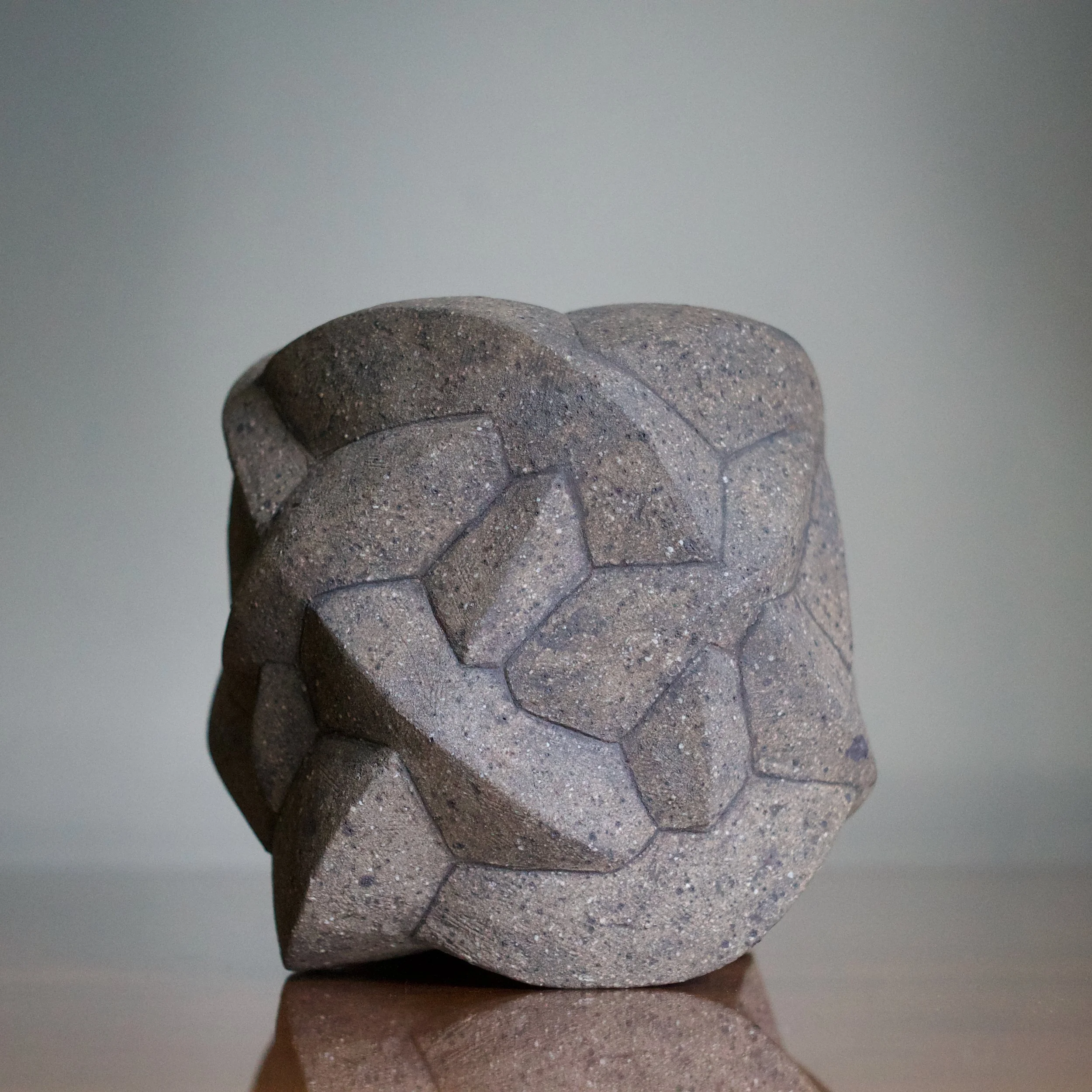 At first glance there seems to be a logic to Takeuchi’s pattern, but when you try to trace its progression, your brain quickly gives up. There is a satisfying beauty to the unsolvable puzzle. With their non-reflective surfaces and unique sculptural forms, Takeuchi’s work has been described as particularly Zen. And his sekki forms are perhaps his most austere. Equally ancient and modern, they exist on their own plane.