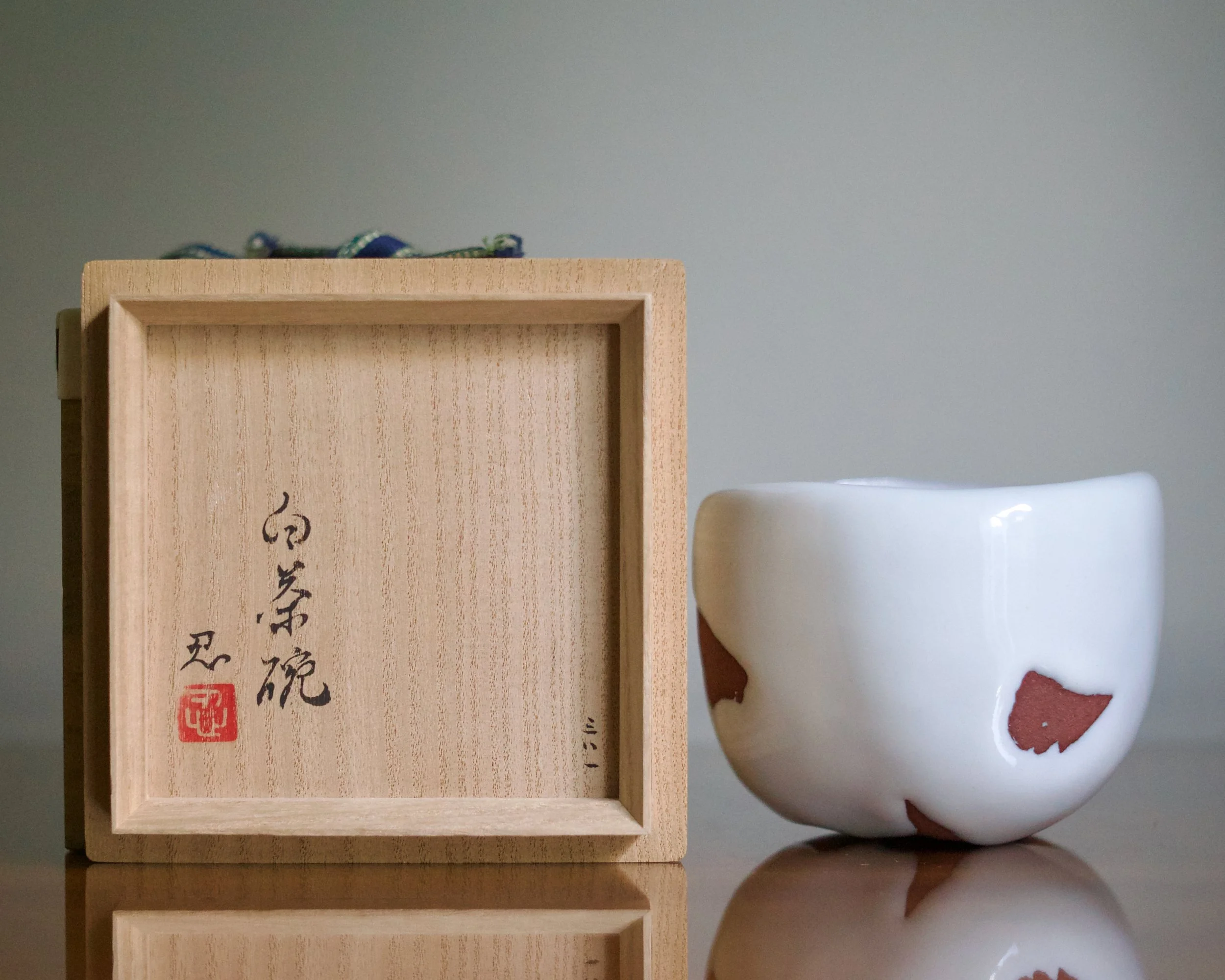 This white tea bowl dates from a 1991 show held at Toykyo’s Kandori Gallery, owned by the legendary Mme Kikuchi Tomo (1923 - 2016), of Musée Tomo fame. Shinobu Kawase’s career is closely linked to the Kandori, and, in many ways, Mme Kikuchi launched his career.