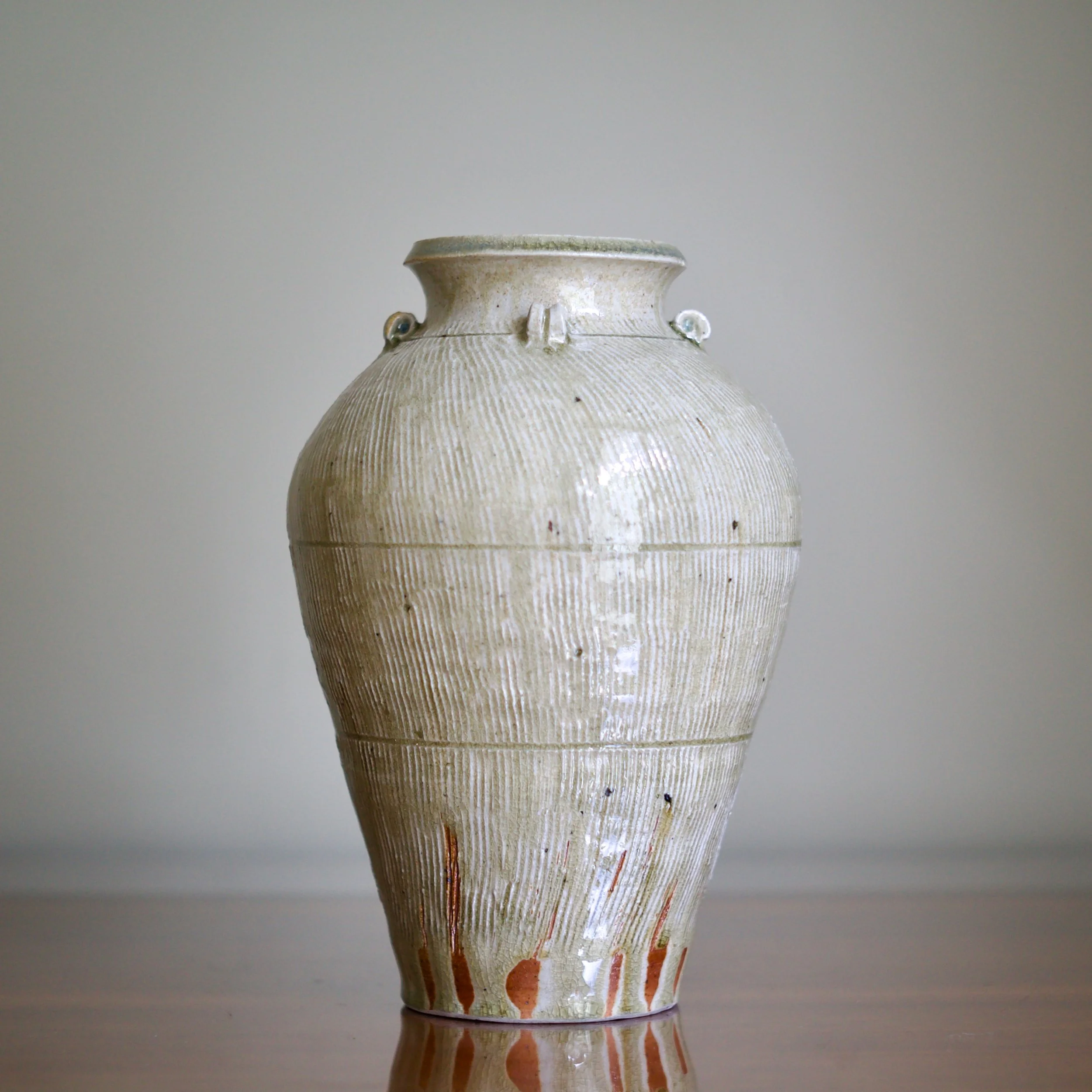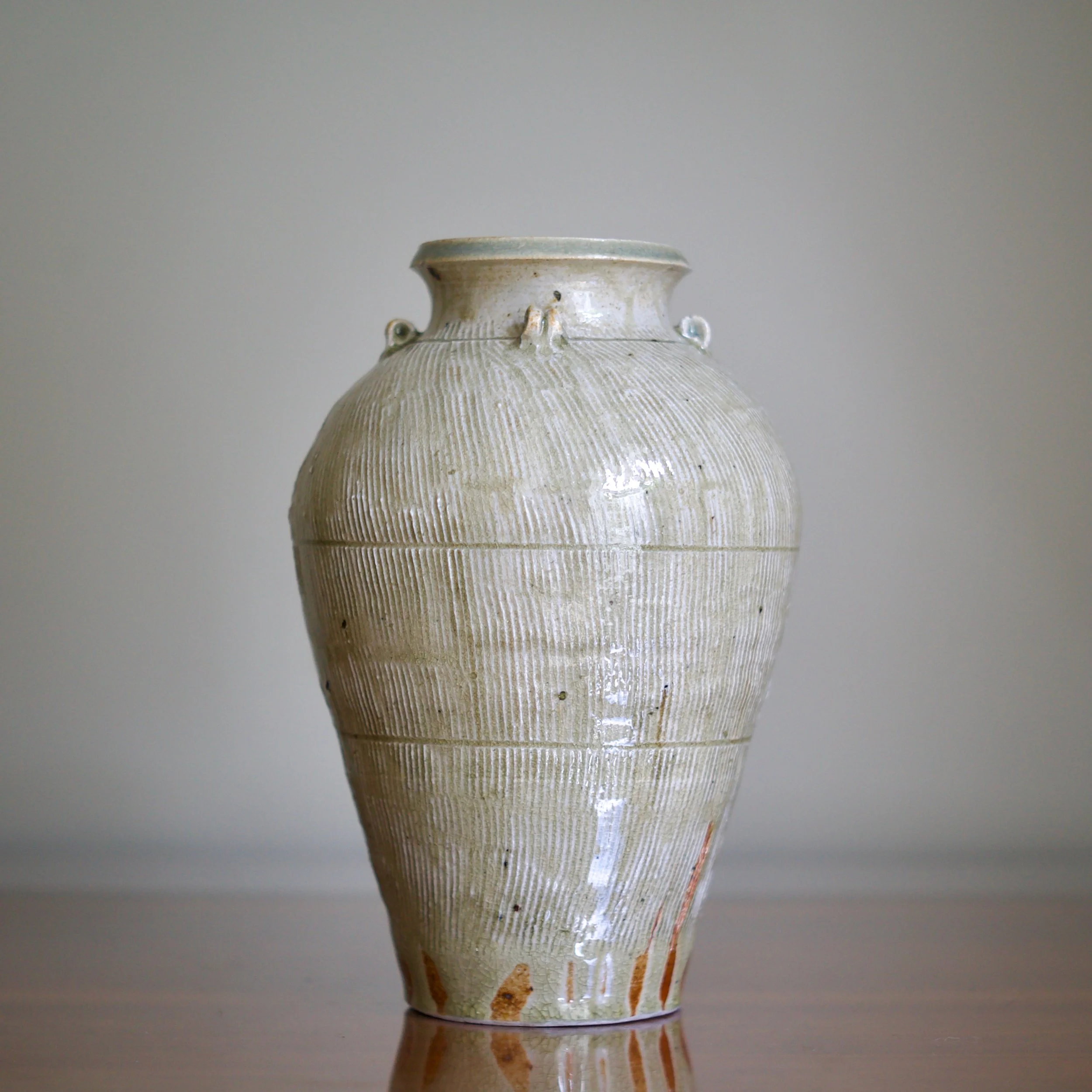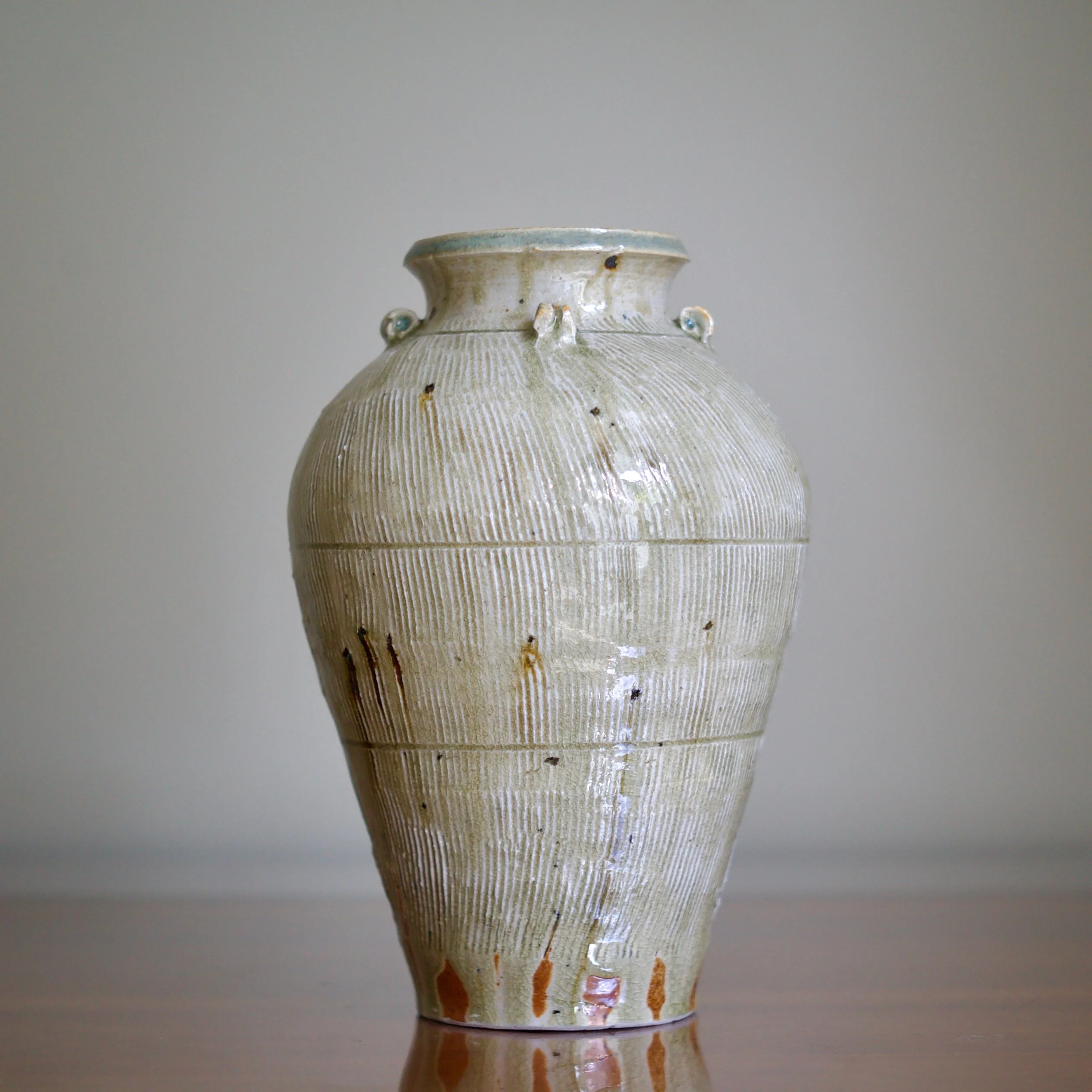 "灰釉四耳壺” ash-glazed jar with four lugs