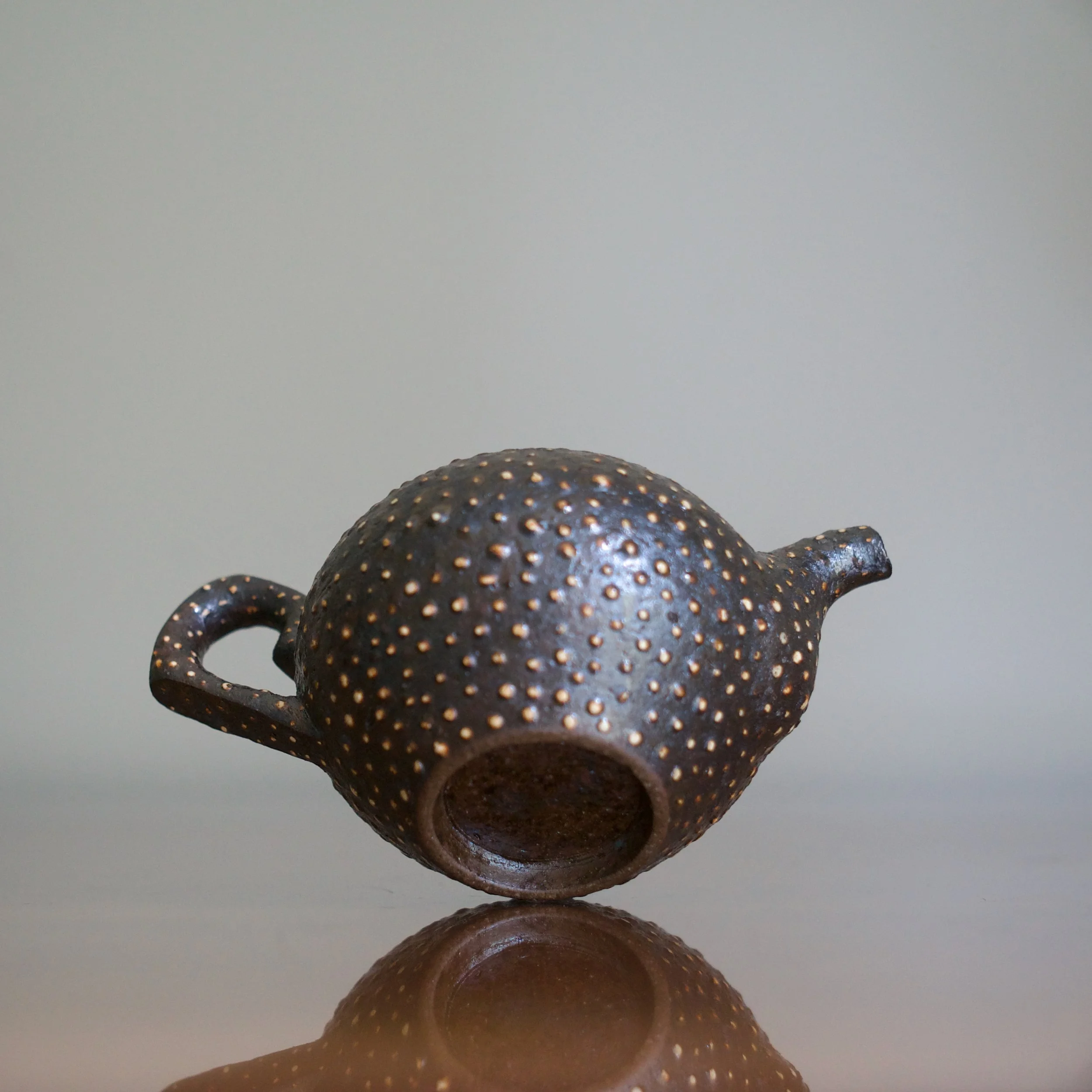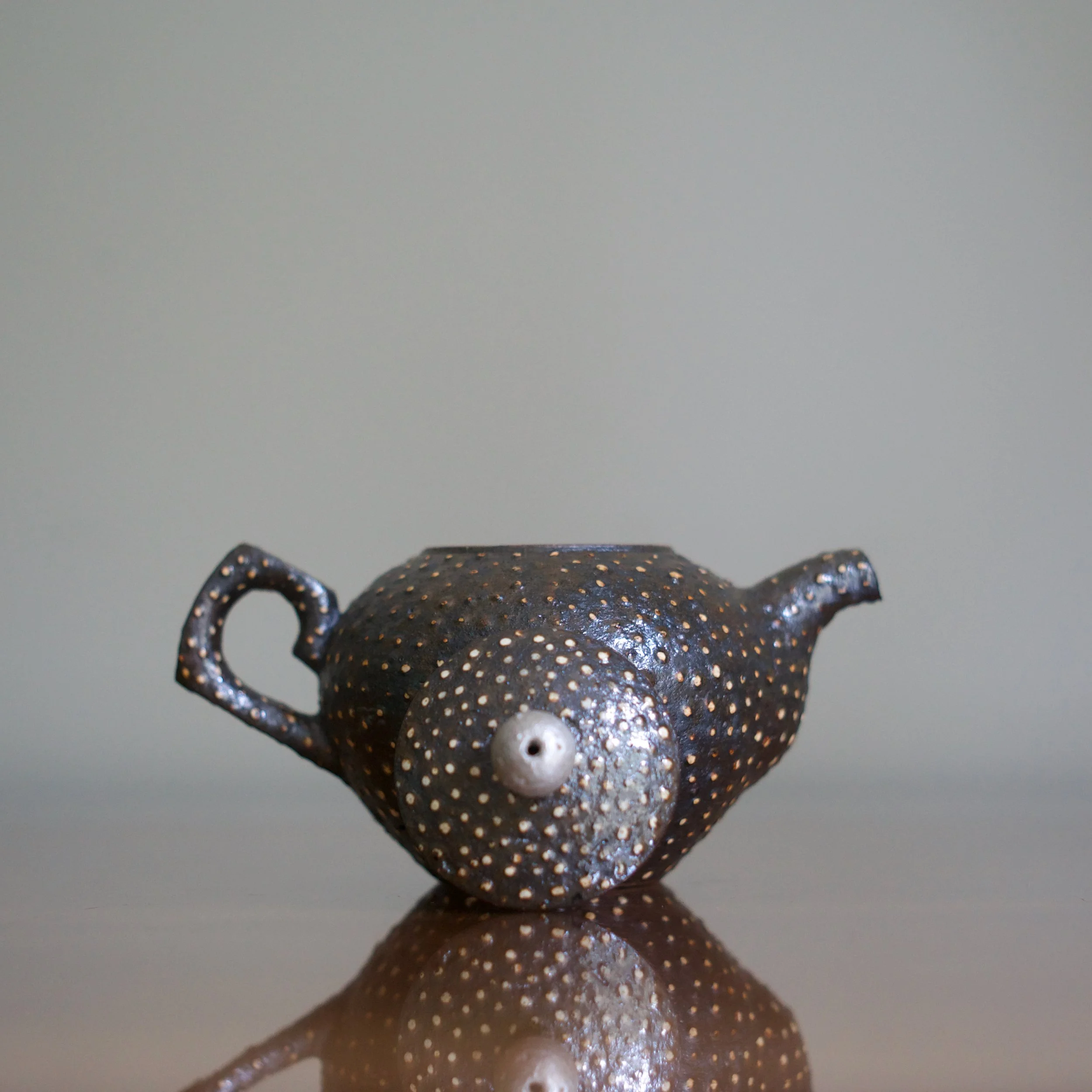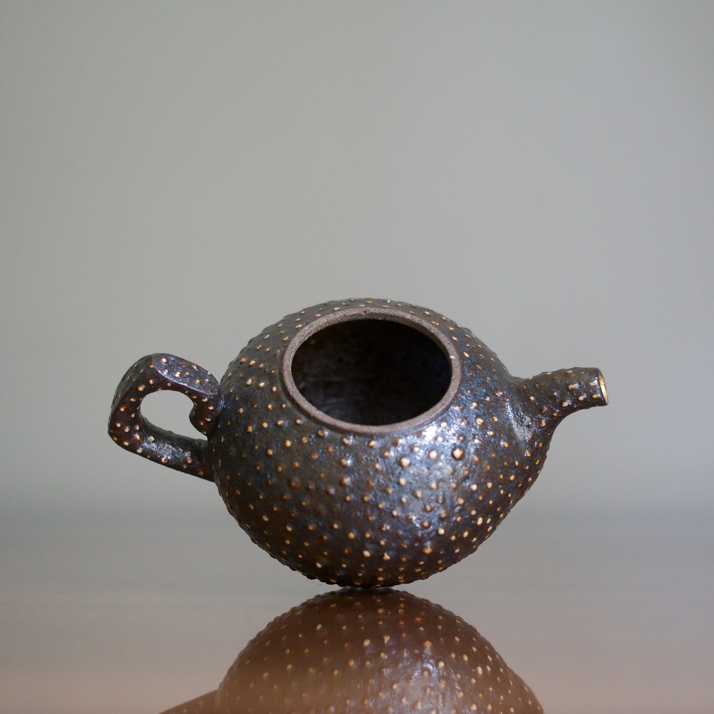 Park manages to satisfy all the teapot’s practicalities while still producing a form that is fresh and exciting to both see and touch. He used a very dark buncheong clay. The iron content is not only traditional to buncheong but also adds to the “taste” of the teapot’s clay.